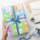 Uma série de coelhos bonitos e coloridos segurando flores. Este design parece realmente eficaz nestes papéis de enrolamento