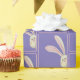 Coelho fofo da Páscoa em uma moldura rosa em fundo roxo.