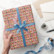 Papais noeis Bonitos e Divertidos, Mushroomcore, Papel de enrolar Cogumelos de Natal. A design mostra uma grade de cogumelos vestindo chapéus de Santa com painéis coloridos de fundo de cogumelo, banana e rosa-claro. Estão disponíveis presentes e suprimentos correspondentes.