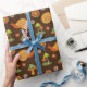 O papel de empacotamento Cute Cottagecore apresenta os cogumelos retrorreflectores e o padrão dos caracóis em fundo castanho.