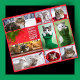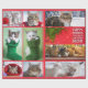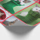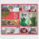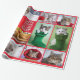 Dez fotos de gatos em papel de embrulho, organizadas em uma colagem de Natal com bordas vermelhas.