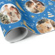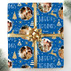 Torne seus presentes de férias especiais com papel personalizado de empacotamento de fotos. Este elegante design apresenta ilustrações ao estilo de vintage inspiradas pela opulência da era Art Deco. Inclui renas saltitantes, árvores festivas de Natal e estrelas, em conjunto com na moda retro tipografia. Personalize o modelo com três fotos favoritas e o nome do destinatário ou o sobrenome da sua família. Um design único que combina o estilo do eterno com uma reviravolta moderna! Este pacote de presentes de padrão uniforme está disponível com um acabamento mate ou brilhante. Cores impressas: azul, branco e uma cor dourada.