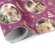 Torne seus presentes de férias especiais com papel personalizado de empacotamento de fotos. Este elegante design apresenta ilustrações ao estilo de vintage inspiradas pela opulência da era Art Deco. Inclui renas saltitantes, árvores festivas de Natal e estrelas, em conjunto com na moda retro tipografia. Personalize o modelo com três fotos favoritas e o nome do destinatário ou o sobrenome da sua família. Um design único que combina o estilo do eterno com uma reviravolta moderna! Este pacote de presentes de padrão uniforme está disponível com um acabamento mate ou brilhante. Cores impressas: ameixa roxa-rosa, branca e uma cor dourada.