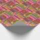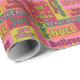 Adicione um toque de vintage aos presentes de Natal este ano com este papel de embrulho de estilo retrô. Ele apresenta uma colagem de Cartões de natal e afirmações em uma paleta colorida em estilo de anos setenta de cor rosa, laranja, vermelha, verde e verde limão.