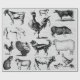 Uma colagem rústica de animais de fazenda em uma cinza branca com textura em forma de fundo. Um design excelente para amantes do celeiro do país. As ilustrações a preto e branco dos animais de criação incluem cães, ovinos, caprinos, gatos-fazenda, vacas, suínos, perus, galinhas e muito mais. Um design de tema rústico ideal para sua casa ou presente para alguém especial.