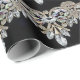 Um colar de diamante com uma espiral de folhas de ouro e outros embelezamentos em um fundo de veludo preto.