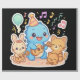 Torne a festa do seu filho mais especial com este adorável design de dinossauro kawaii! Apresentando um animado dino azul vestindo um chapéu de festa e tocando violão, cercado por um belo coelho e dois gatinhos brincalhões, esta cena alegre é cheia de notas musicais coloridas, balões e confete - perfeito para uma celebração infantil! Ideal para convites, favoritos para festas, cartões de obrigado, adesivos, t-shirts e decorações. Projetado numa encantadora paleta pastel, esta trabalho de arte traz sorrisos e um toque de magia a qualquer aniversário ou evento musical infantil.
