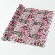 Papel De Presente Colheita Rosa Com Um Pássaro E Folhas De Holly
