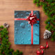 ©PLdesign foto de gotas de água em papel de plástico azul para presentes.