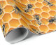 Embrulhe lembrancinhas e produtos do apiário em uma ilustração detalhada de colônia de abelhas melíferas sobre uma grade de favo de mel em cores de mel dourado. Crie lindos presentes para chá de bebê, lembrancinhas de casamento e decorações, ou embrulhe potes de mel e cera de abelha como presentes para familiares e amigos.