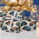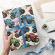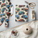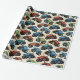 This dynamic monster truck pattern boys' wrapping paper features a repeating design of colorful red, blue, and teal monster trucks catching air, with realistic mud splatters. It is perfect for young racing fans and truck enthusiasts.