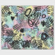 Colorful urban graffiti patchwork pattern wrapping paper featuring bold abstract blocks, expressive brush strokes, scribbles, stars, and mixed-media textures in bright blue, yellow, pink, orange, and black. Energetic and edgy with a modern street art aesthetic, this seamless design is ideal for graffiti art lovers, maximalist style fans, creative teens, and contemporary art enthusiasts.