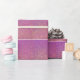 O papel de embrulho para comemoração em um lindo padrão de brilho brilhante colorido de cor roxa roxa brilhante Faux é apresentado neste presente.
