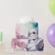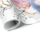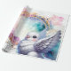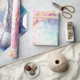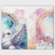 A dynamic and colorful background highlighted by a golden circular frame, showcasing a delicate watercolor painting of a dove prominently placed in the foreground.