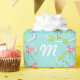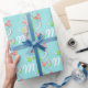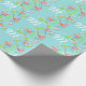 Um trio de flamingos cor-de-rosa animados batem as asas e agitam as penas contra um fundo azul aquático com juncos e nenúfares. Um design elegante com um toque retrô que pode ser personalizado com o seu próprio texto, imagens e ideias. Uma imagem de arte digital original criada por Quirky Chic.