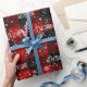 Texto Branco COM AMOR com flocos de neve em fundo de xadrez de búfalo vermelho e preto. O texto pode ser editado.
