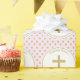 Communion Pink com Bolinhas Douradas. Este lindo e elegante design da Primeira Comunhão é apresentado em uma bolinhas de ouro e fundo rosa com uma delicada cruz de ouro. Aperte as memórias do excelente da primeira comunhão sagrada do seu filho com este lindo design. Confira os acessórios da Primeira Sagrada Comunhão, papelaria e presentes de comunhão.