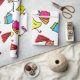 Uma garota feliz com um vestido amarelo comprando um pouco. Este design parece realmente eficaz nestes papéis de enrolamento