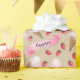 Este presente personalizado de aniversário de sorvete é ilustrado manualmente — por um humano, eu! Suas cores pastéis, cor-de-rosa, branca, creme e vermelho-cereja, evocam nostalgia e tradição. Este padrão personalizado de sorvete apresenta cor d'água, morangos e cones de sorvete de morango, no estilo de vintage, em fundo castanho esticado. Eu pintei manualmente os cones de sorvete e morangos no papel, com escovas, a maneira antiquada, dando a eles uma aparência vintage. Sua personalização vai na tipografia de script em uma faixa colorida de morango coordenadora. As cores do vermelho, rosa e creme fazem com que este padrão seja perfeito para qualquer ocasião, desde aniversários e feriados a presentes cotidianos.