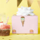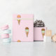 Um teste padrão doce do cone do sorvete em um fundo cor-de-rosa para um papel de envolvimento bonito do aniversário. O design mostra o sorvete no limão - amarele, rosa da morango, laranja, baunilha, verde da hortelã e castanho chocolate. Você pode mudar a cor do fundo clicando sobre personaliza-o.