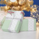 Correspondência com etiquetas de presentes de arco, papel de tecido e fita disponíveis.