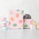 Confete pastel, mas com um toque pictórico. Este design rosa-bege é salpicado com pontos de aquarela aplicados à mão em menta, lilás, céu, pêssego e amarelo-sol—suave, divertido e perfeito para aniversários, chás de bebê, Páscoa ou qualquer celebração de primavera-verão.