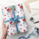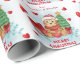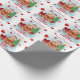 O padrão fofo neste papel festivo de embrulho de Natal é de um adorável gatinho listrado com tigre vestindo um chapéu vermelho de Papai Noel e sentado entre presentes embrulhados ao lado de uma árvore decorada. Entre as imagens do gato está seu texto personalizado em vermelho. Tudo é colocado sobre um sutil fundo azul de floco de neve que é pulverizado com corações vermelhos. Este é um trabalho perfeito para avós, pais, tias e tios enrolarem presentes familiares. Faça-o dizer o que quiser!