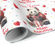 O padrão giro neste papel festivo de embrulho de Natal é de um ursinho de Panda branco e preto sentado com um pacote de presente de Natal. Entre as imagens de urso está o seu texto personalizado em vermelho. Tudo é colocado sobre um fundo de confete de bola redonda multicolorido que é aspergido com corações vermelhos. Este é um trabalho perfeito para avós, pais, tias e tios enrolarem presentes familiares. Faça-o dizer o que quiser!