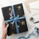 Papel De Presente Confetti ouro astros brilham brilhando preto elega