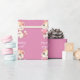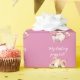 Um gatinho lindo, com pele branca, orelhas rosa, segurando um coração rosa. Este gatinho bonitinho diz no topo "Perfeito para o dia do Namorados.