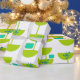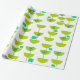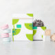 Este papel de embrulho tem uma design moderna do século Médio de semicírculos verdes que se parecem com copos amarrados com estornais de turquesa e retângulos.