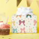 Wrapping paper roll with a cute pattern of bows and polka dots.