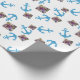 Este papel de embrulho personalizado será o toque final perfeito para a sua festa de aniversário náutica temida. Este design apresenta um padrão de âncora. Adquira a sua hoje!