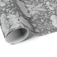 Padrão floral uniforme, preto e branco, na moda, com flores, folhas e cogumelos delicados, num design simétrico, com um fundo texturizado de efeito de malha.