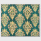 Papel De Presente Cor damasco Dourada Clássica Elegante Verde Teal