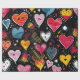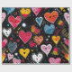 Corações em papel de embrulho de fundo escuro