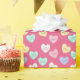 Este papel de empacotamento bonito apresenta um tema de Dia de os namorados. O fundo é um rosa claro com doce clássico de coração de Namorados. Os doces coloridos apresentam vários ditados.