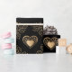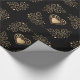 Belo e elegante coração ouro em um quadro de folhas sobre fundo preto