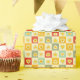 Corações moldados como maçãs, paleta de cores fofinha, quadrados coloridos