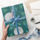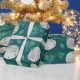 Dólares de areia e coral marinho papel de embrulho verde em alto mar em um rolo. O buraco de fechadura branco realista e os dólares fazem um padrão junto com corais e conchas azul-esverdeadas. Perfeito para comemorar um aniversário adulto, ou embrulhar presentes de casamento.