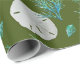 Dólares de areia e papel de embrulho de coral marinho em um rolo. O buraco de areia branca realista e os dólares fazem um padrão junto com corais azul-esverdeados e conchas em um fundo verde-sábio escuro. Perfeito para comemorar um aniversário adulto, ou embrulhar presentes de casamento.