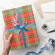 "This refreshingly bright and unique seamless plaid pattern features a dominant palette of vibrant red and warm coral/orange, balanced by wide bands of muted sage green. The pattern is accented with fine, crisp white and golden yellow lines, giving it a lively, almost retro, or late-autumn festive look. This pattern is perfect for bright winter scarves and apparel, holiday packaging that stands out, kitchen linens, retro-themed party supplies, or any product aiming to offer a cheerful and unconventional appeal for the holiday season."