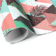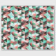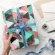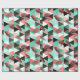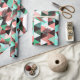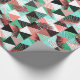 Este papel de embrulho tem um padrão de triângulo no estilo Memphis nas cores dos corais tropicais e das árvores. Este design de estilo da Flórida tem muitos padrões em forma geométrica dentro dos triângulos junto com as folhas de palma de Miami espalhadas pelo padrão. Você pode fazer o padrão no papel de embrulho de presente maior ou menor. Este papel de embrulho faz uma capa de na moda para qualquer presente que você dá a alguém que ama o estilo Memphis dos anos 80.