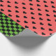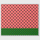 O papel de embrulho cerâmico apresenta um padrão de melancia rosa e corações pretos com borda inferior verde-escura.