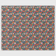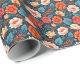 Flores vermelhas coral, rosa suave e azuis céus em um fundo azul meia-noite tornam um papel de presente brilhante e lindo para qualquer ocasião.