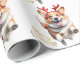 Um corgi alegre com renas de Natal saltando no ar. "Feliz Natal" em texto dourado