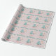 Este papel de embrulho de Natal personalizado apresenta uma ilustração de desenho animado bonitinha e de estilo feminino. Um unicórnio rosa bonito está decorando sua árvore de Natal debaixo dos flocos de neve que caem. A saudação de Feliz Natal é impressa acima do unicórnio e um nome personalizado é impresso abaixo. O plano de fundo é uma cor rosa pincelada e suave.