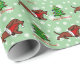 O papel de envolvimento bonito e engraçado dos desenhos animados do Dachshund para o Dachshund ventila!! Um filhote de cachorro adorável de Doxie está funcionando com seu/seu chapéu do papai noel em seu/sua boca!! Design do Natal do floco da neve no verde da hortelã. Você pode personalizar o texto e o mais! Desenhos animados originais e lunáticos do cão criados por Naomi Ochiai de Japão.