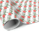 Uma flor de rosa rosa em um caule com folhas é ladrilhada para formar linhas diagonais de rosas e folhas verdes em um fundo branco.