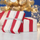 Papel De Presente Cortina de Chás com Strike Vermelho e Branco